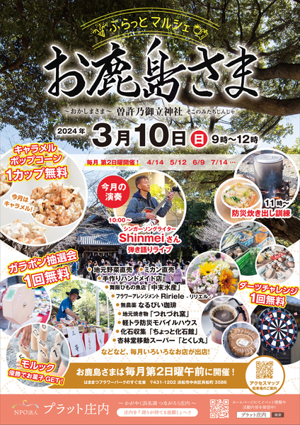 毎月第2日曜はプラット庄内マルシェ「お鹿島さま」。