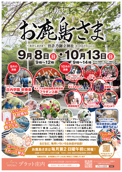 毎月第2日曜はプラット庄内マルシェ「お鹿島さま」。