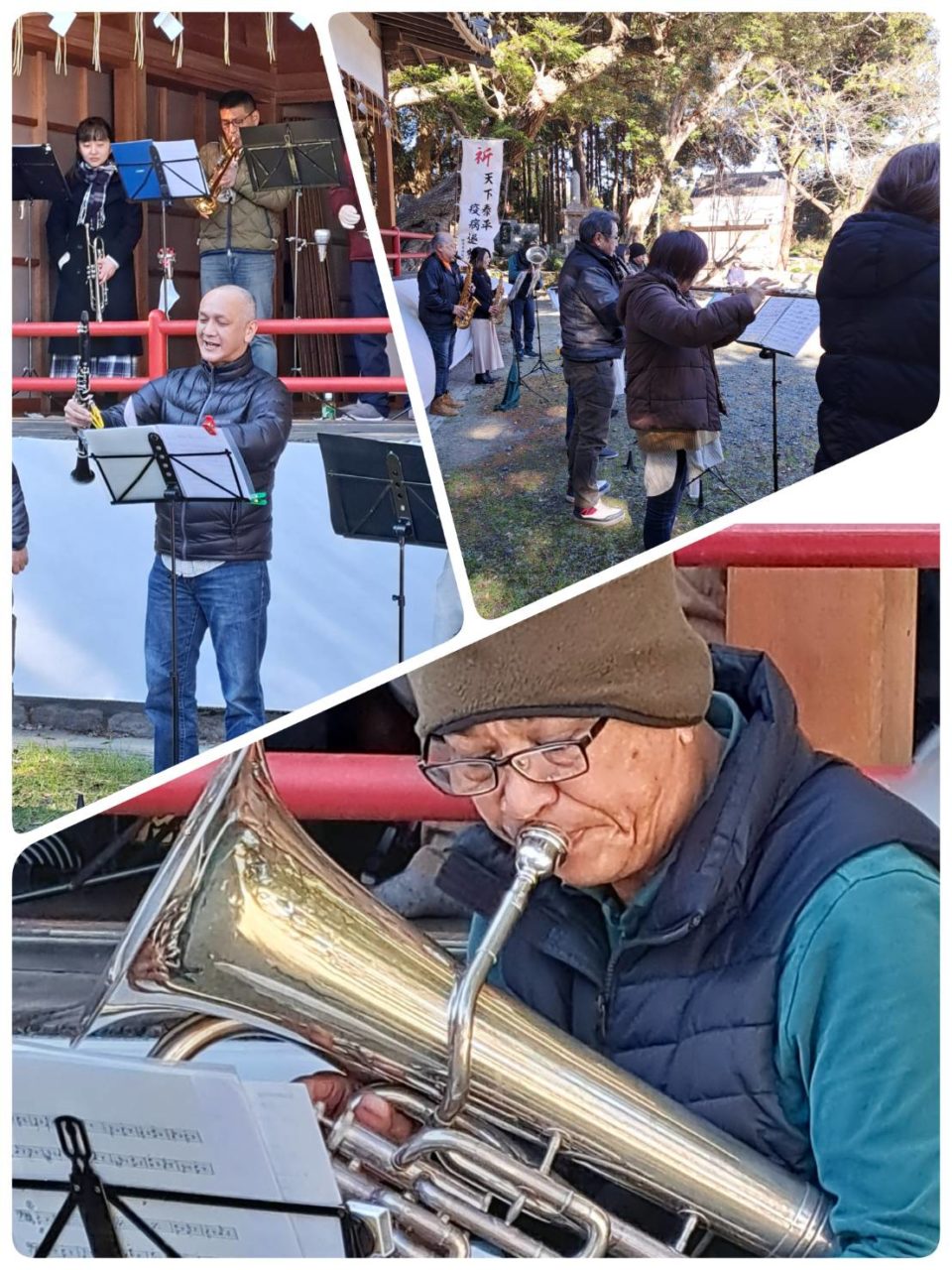 今回は、昭和55年に創立され、庄内中学校吹奏楽部を卒業された方々を中心とした「庄内フィルハーモニー」の演奏が披露されました。底冷えのする寒い環境の中にも関わらず、大変楽しく聞かせて頂くことができ、寒さを忘れ聞き入りました。是非機会があれば定期的な出演をお願いして、多くの人に聞いてもらいたいと思いました。