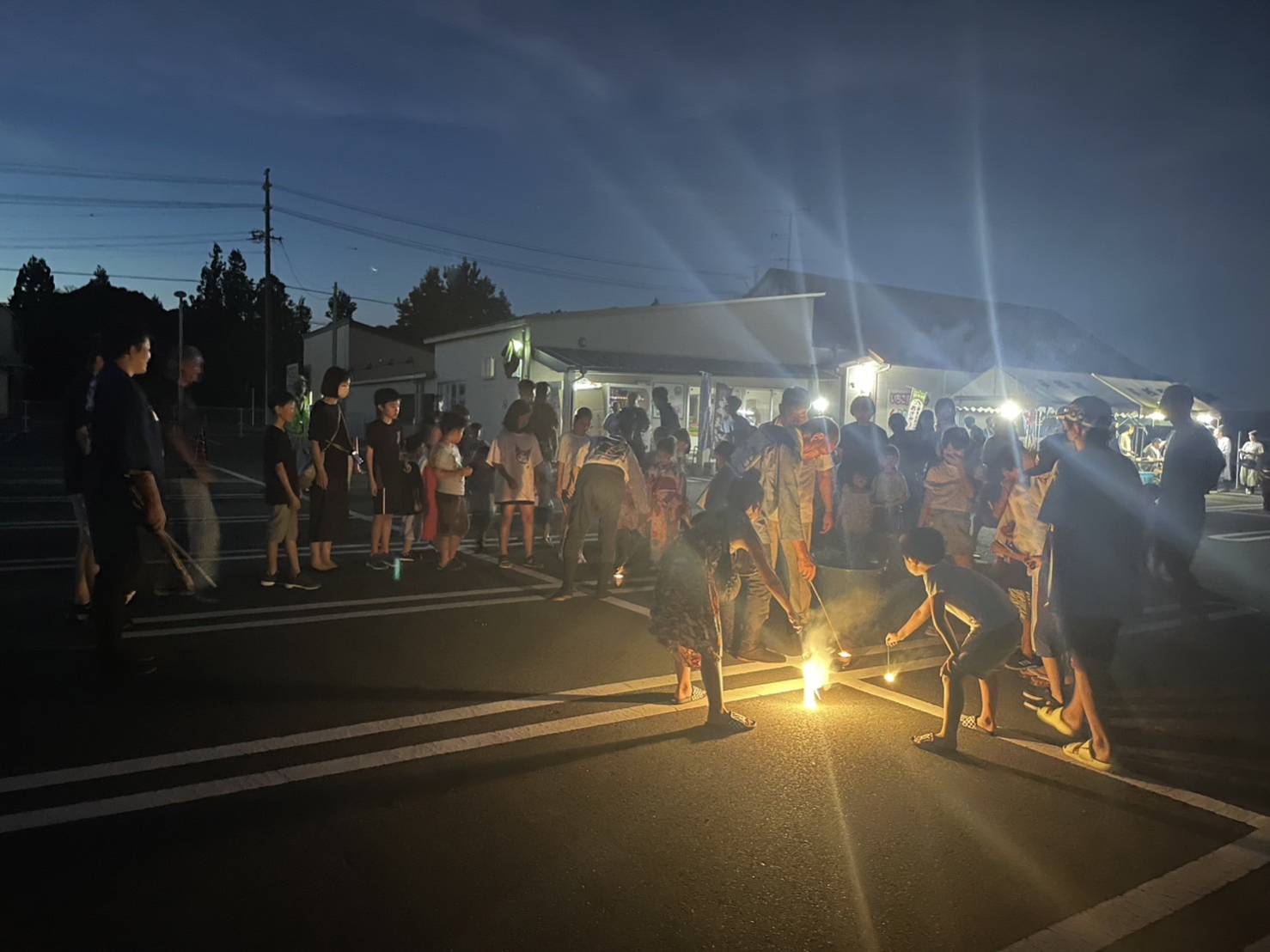 夏休みに入り大勢の子どもが参加し、ビンゴ大会やかき氷、フランクフルトを食し、子供花火で楽しんでいます。