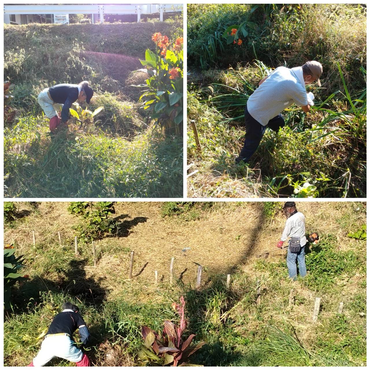 舘山寺町では、あおぞら公園と改称した広場の草刈りと旧北庄内小学校前の通称「から池」の整備と草刈りも、緑化推進協議会のメンバーが参加して奉仕活動を実施しました。