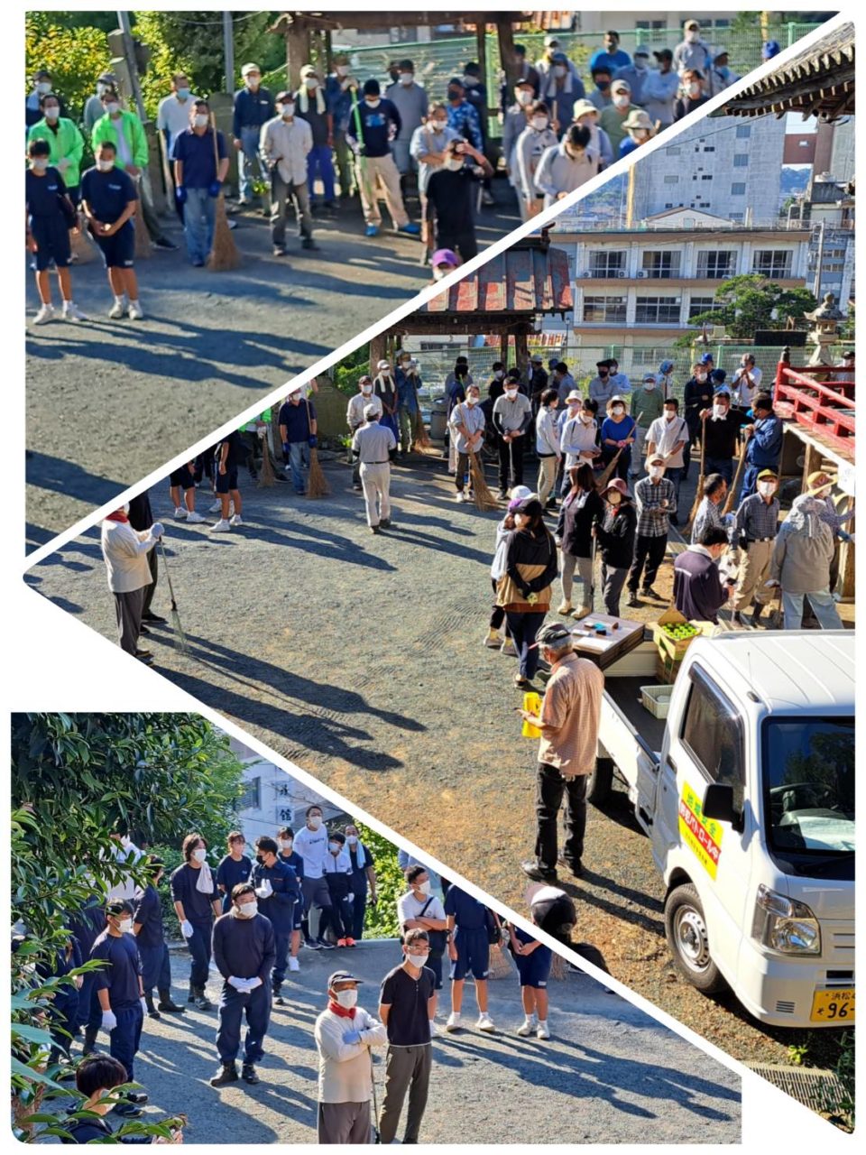 西区舘山寺町では、晴天の中愛宕神社・舘山寺がある舘山(タテヤマ)を、町民による草刈りと遊歩道の清掃を執り行い、観光のひとも安全で気持ちの良い場所と感じられるよう汗をかきながら懸命に奉仕作業が進められました。