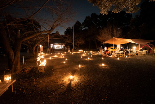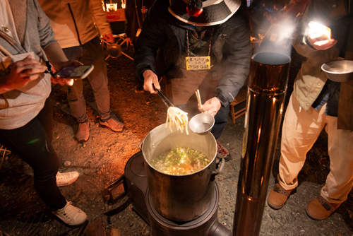 参加者全員で神社境内に100台のフュアーハンドランタンを並べます。