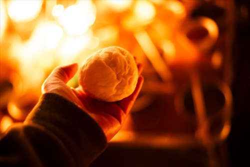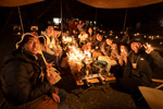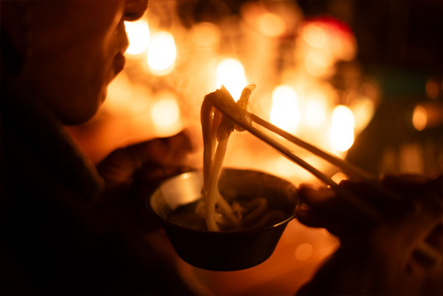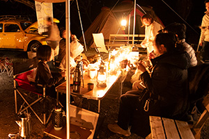 1台5wほどのちいさな明かりですが、机の上に10台ほど並べると意外と過ごせる明るさに。あたたかいオレンジの光を前に話が弾みます。