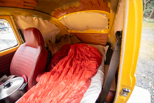 突然の災害訓練のために車中泊体験も実施。