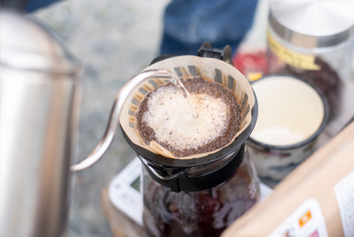 挽きたてのコーヒーを淹れてくれました。朝のお祓いでご一緒の一般の方も誘って温かい珈琲をいただきました。