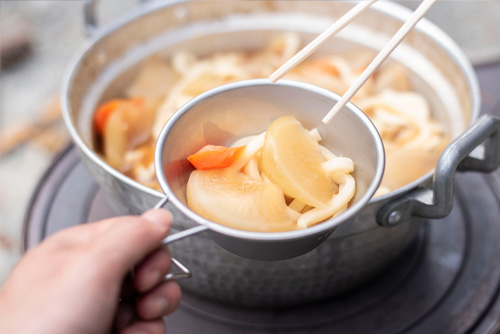 大根は薪ストーブで煮込むこと1時間。すっごく柔らかくて味が染みていておいしくできました!