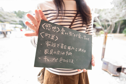 1)今回の防災キャンプで気が付いた点、感じたこと