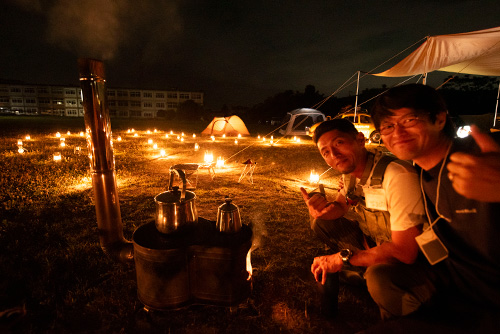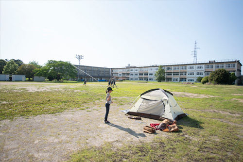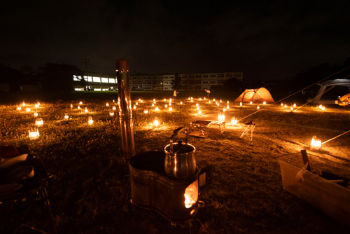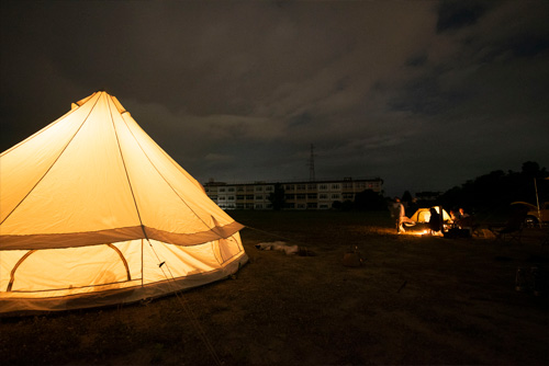夜の廃校×テント。