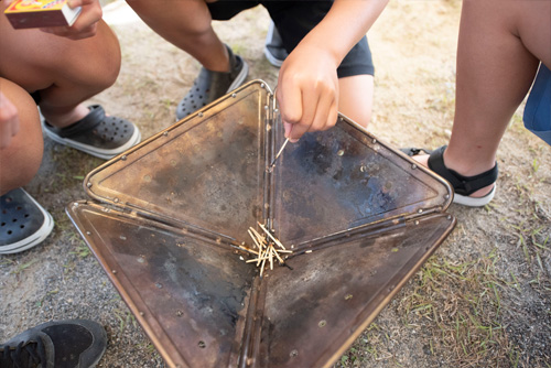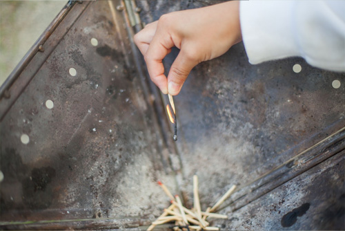 まずはマッチ体験。なかなかマッチって触る機会がないよね。はじめは火が付いたらすぐに離してしまった子も、「火って上が熱いよー」って教えてあげて何度かつけると、大分マッチの根本まで火が保てるようになりました。