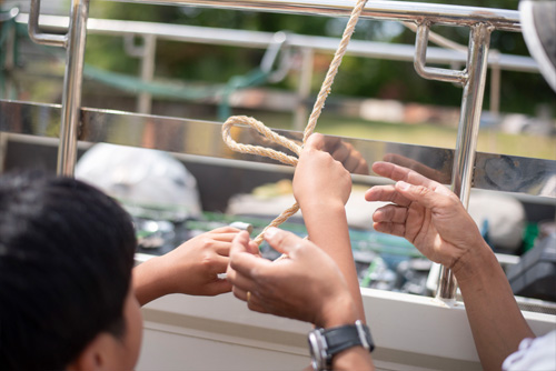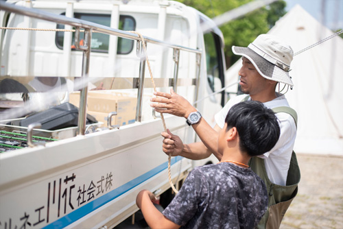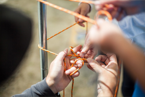 2グループに分かれてもう1グループはキャンプで王道の「もやい結び」体験!