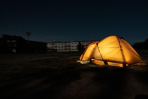 旧北庄内小学校でのキャンプイベントははじめてということで、今回はテストを兼ねて紹介者の方を中心に開催。