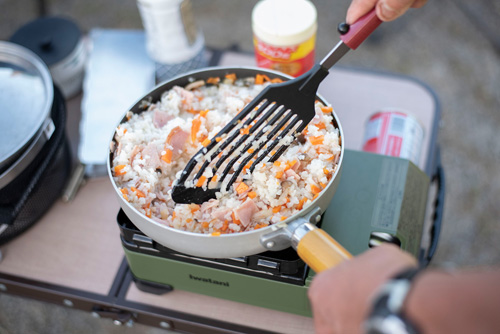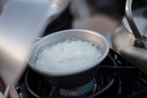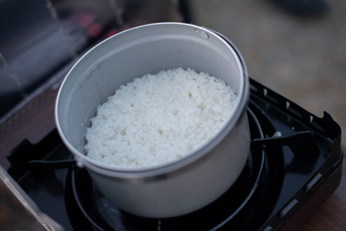 2が良さそうだったので、キャンプ用のライスクッカーで普通に炊飯。無洗米の要領。普通のお米と違って炊飯が激早いことがわかる。普通キャンプ場だと「ご飯おかわりー」ってなっても、「もうないんだよねー」ですが、このアルファ化米だと食べたい分だけ炊飯してもすぐに炊けます。キャンプ飯としては意外と優れものかも。