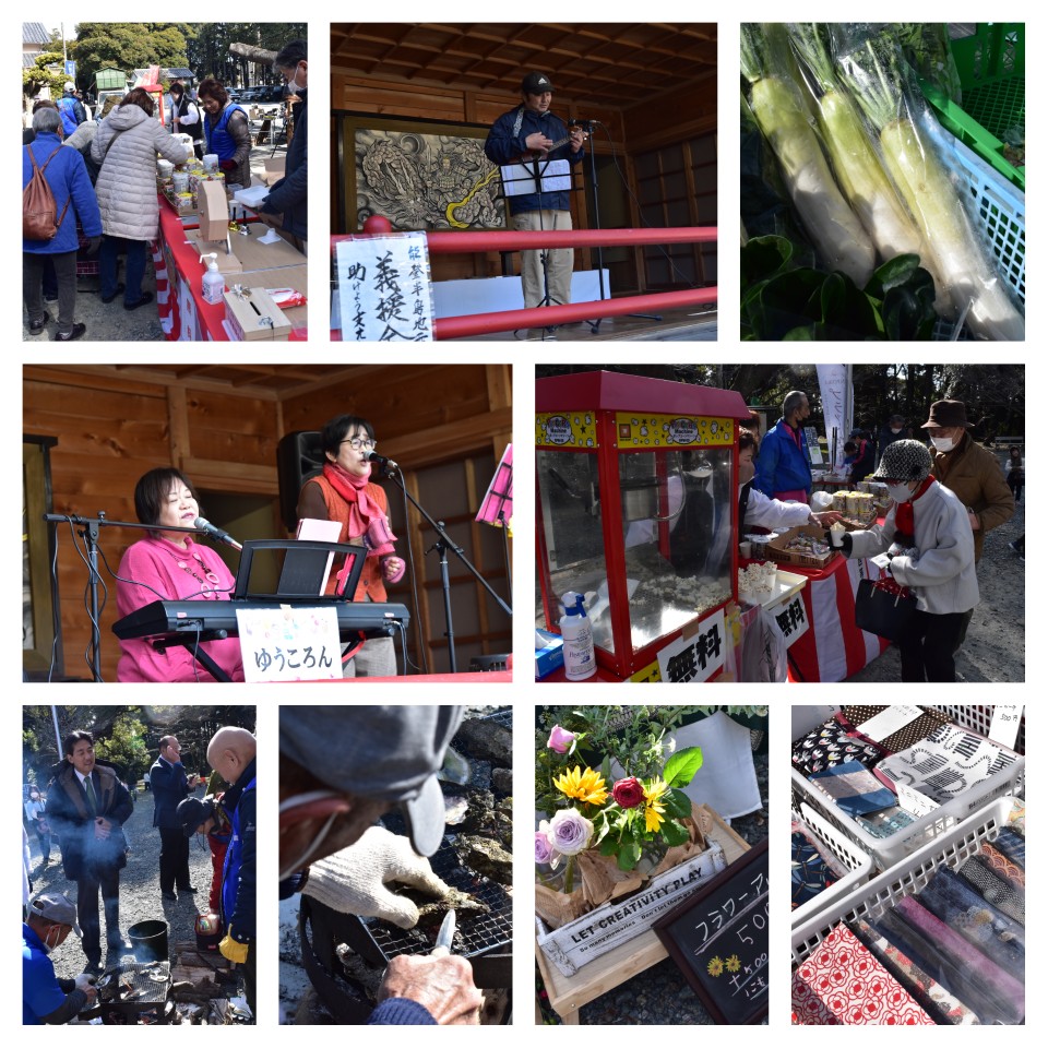地元野菜直売、フリーマーケット、フラワーアレンジメント、つれづれ窯、アンモナイト化石展示、なるぴい珈琲、とくし丸、ガラポン抽選会、的あてゲーム、モルック競技、ポップコーン、舞阪ひもの魚店、手作りハンドメイド、浜松和太鼓集団荼打
