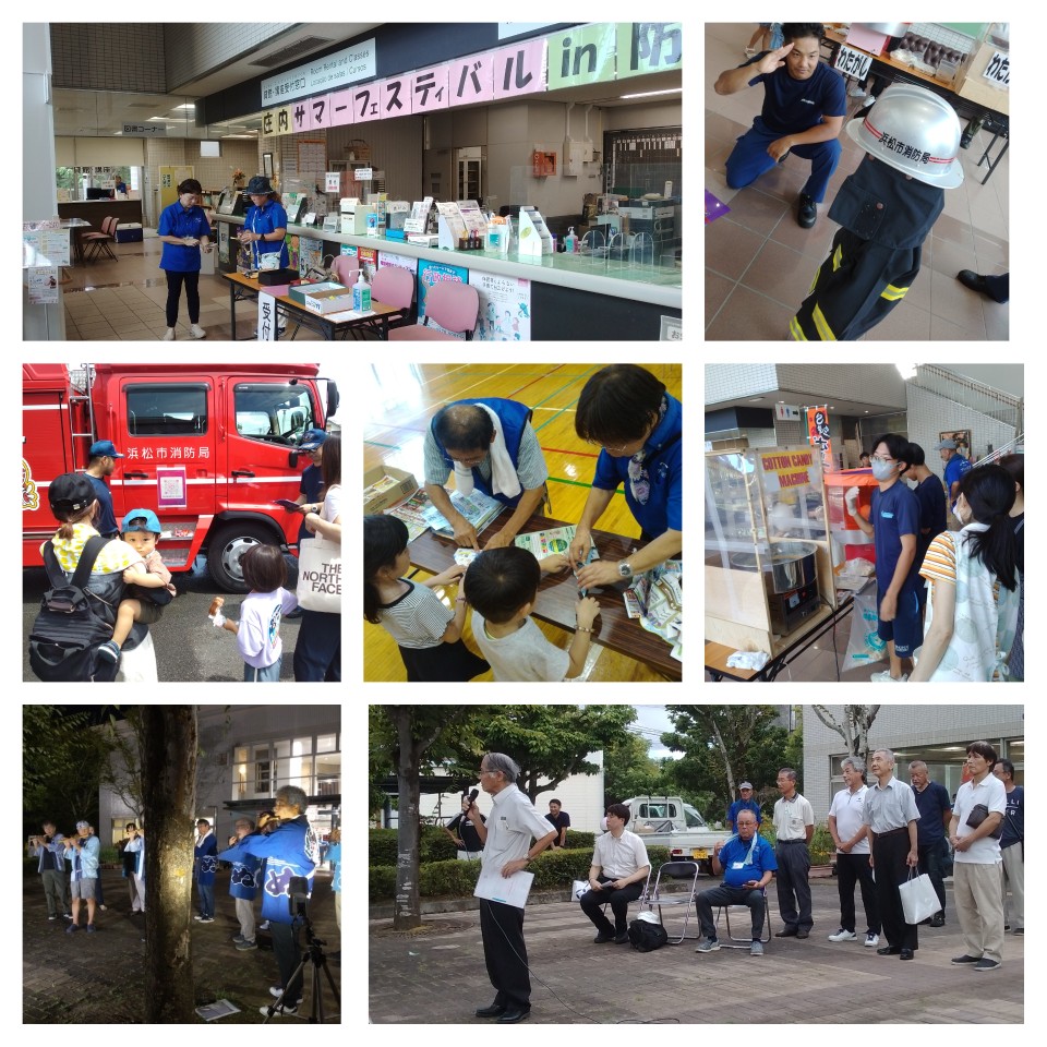 地元野菜直売、フリーマーケット、フラワーアレンジメント、つれづれ窯、アンモナイト化石展示、なるぴー珈琲、舞阪ひもの魚店、とくし丸、ガラポン抽選会、ダーツ、輪投げゲーム、モルック競技、ポップコーン、手作りハンドメイド店、庄内学園吹奏楽部、オイスカ浜松交際高等学校フラダンス部など
