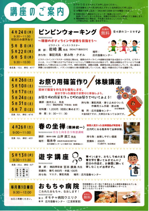 庄内協働センター講座案内 申込先:053-487-3366(プラット庄内)