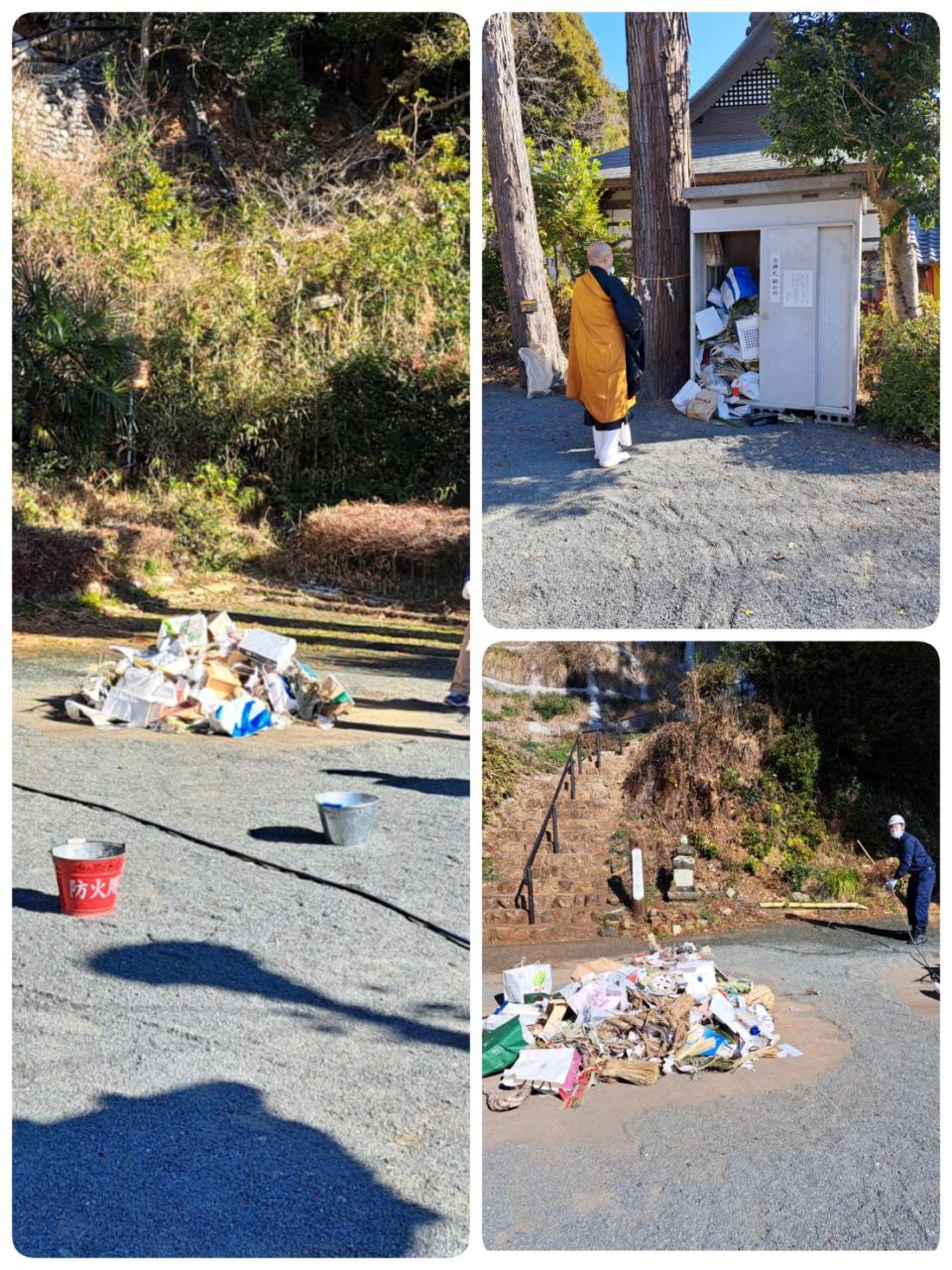 イベント・交流 舘山寺町「どんど焼き」 イベント・交流 2023.02.06 浜松市西区舘山寺町の愛宕神社境内において「どんど焼き」が行われました。初めに舘山寺の舘住職による読経に続き神式の儀式を行い、聖観音菩薩様の見守る中で、年末にお迎えした歳神さまを煙や炎と共にお見送りして、今年の無病息災や五穀豊穣を願って、お正月のしめ飾りや昨年お世話になったお札等に火を入れました。