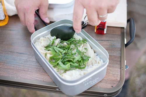 3)餃子と一緒にメスティンで炊く