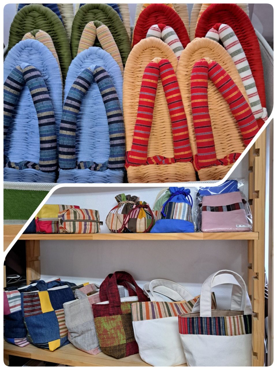 布ぞうり、遠州木綿を使ったトートバッグも手作りです。