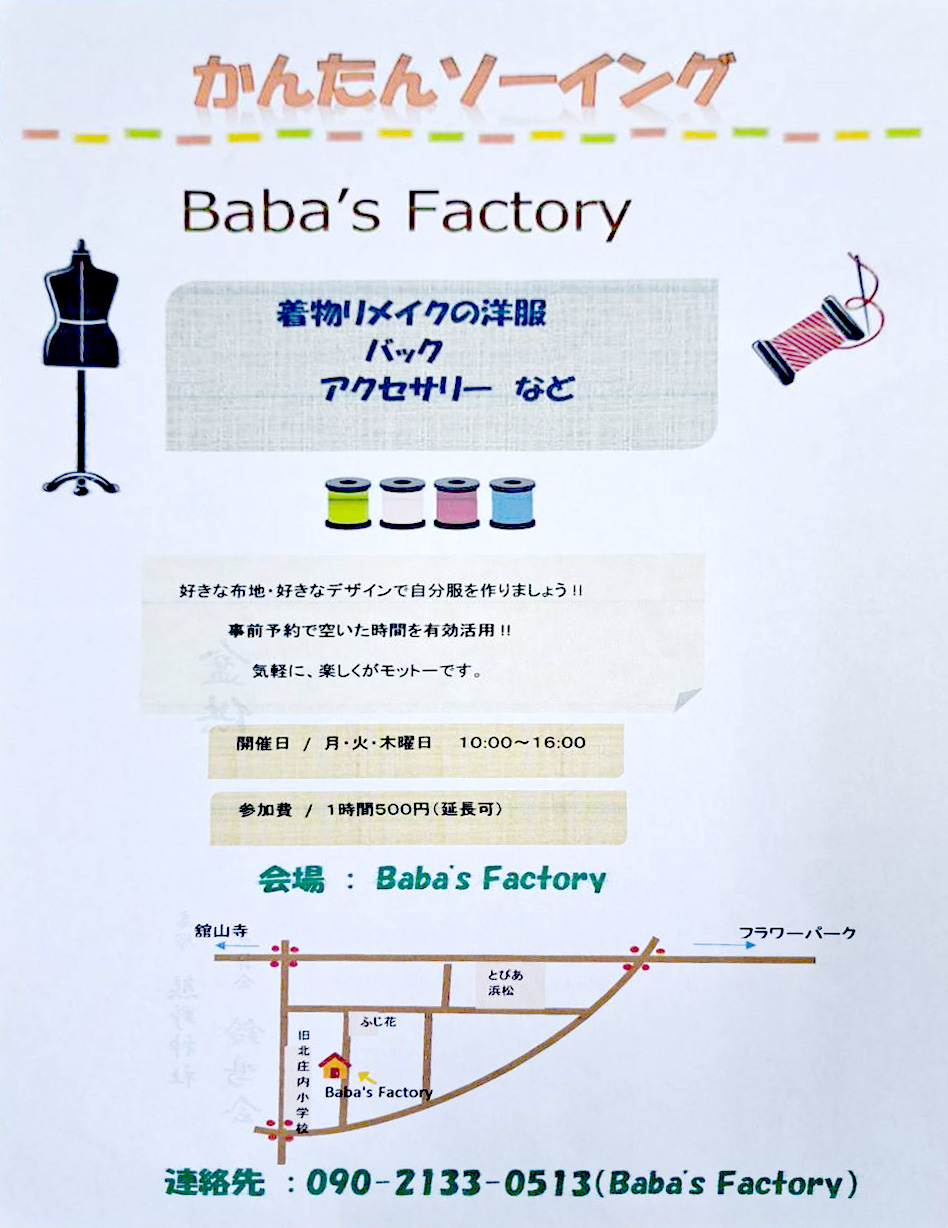 結婚前に洋裁学校を卒業して、家庭洋裁を趣味にしていましたが、子育て、介護を経て、私の人生を取り戻したくなり、60歳を過ぎた頃、娘(真美)さんに背中を押されて、着物リメイクの洋裁教室を始め、今では、遠州木綿に魅了され、多くの注文を受けています。